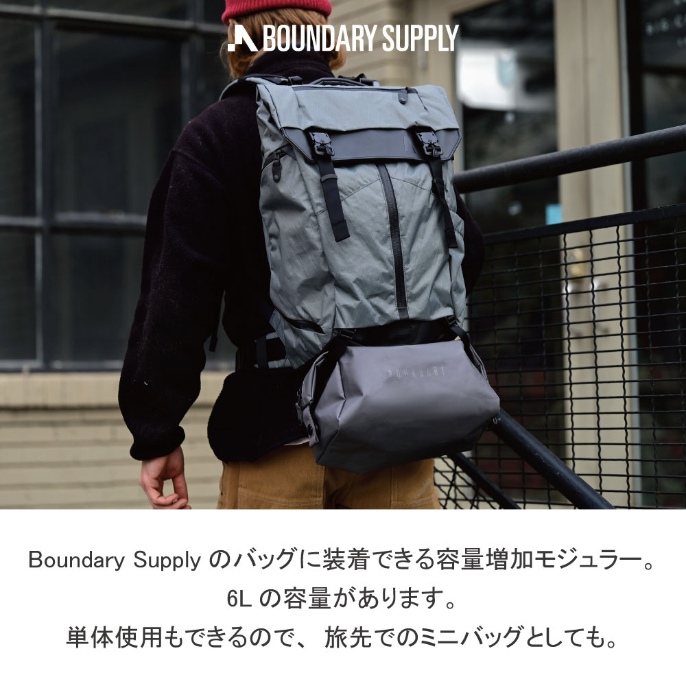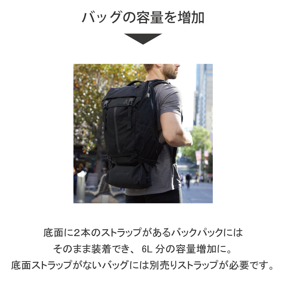 バックパックの底面に装着できる、容量増加コンパートメント。撥水加工が施されているので、雨の日も安心です。