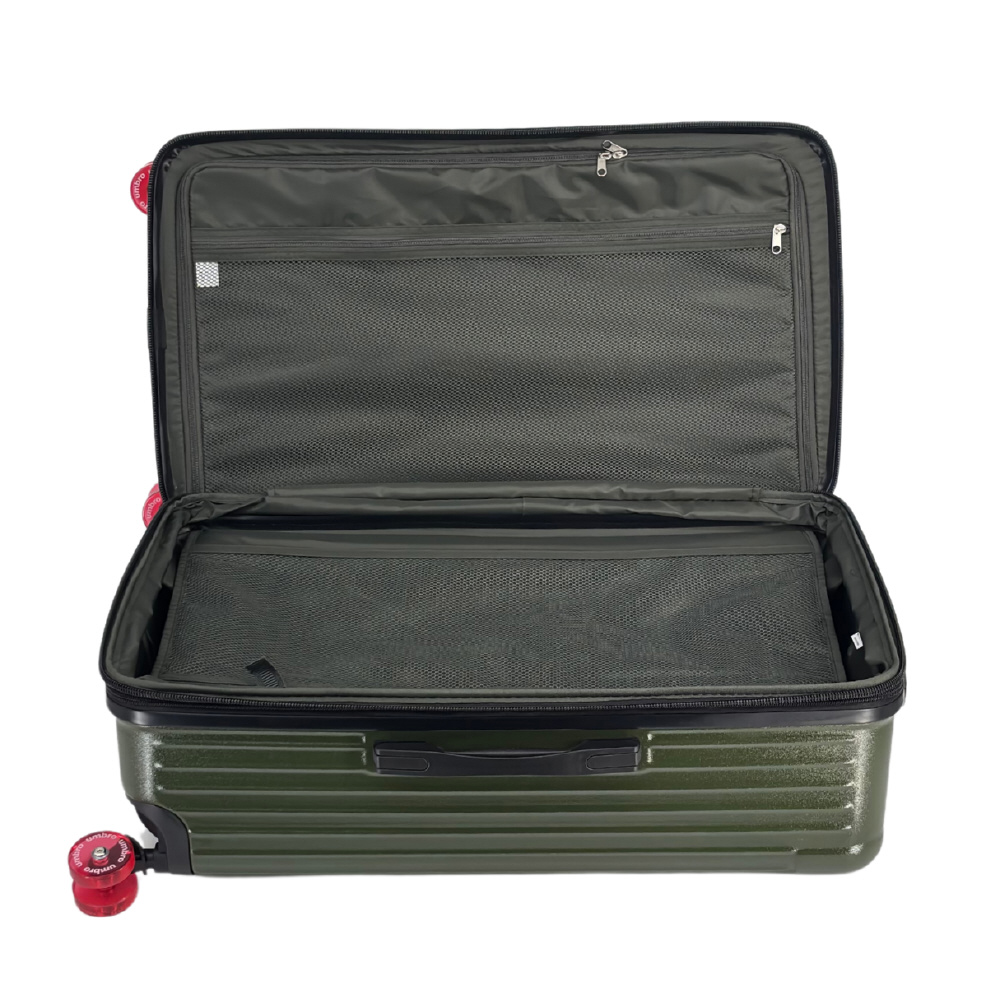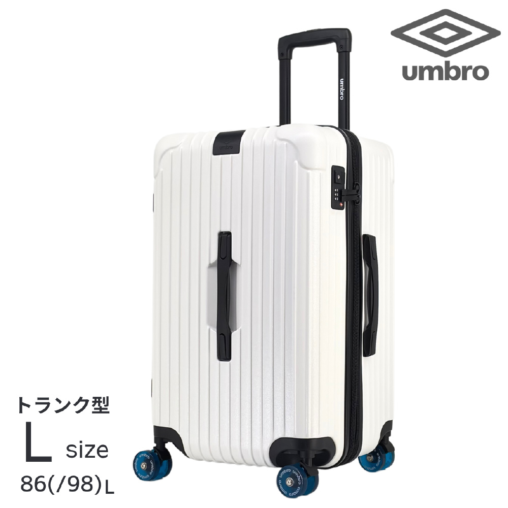 軽量で大容量設計のumbroトランク型スーツケースです。拡張機能により荷物の量を自在に調整でき、旅行の快適さと便利さを両立します。
