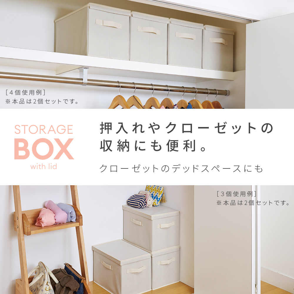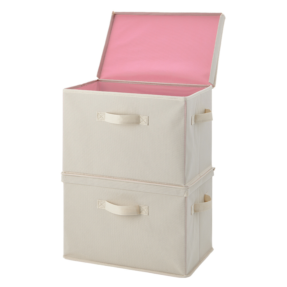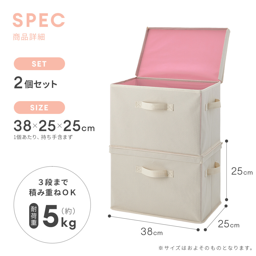フタ付整理箱2個set ベージュピンク 1010262