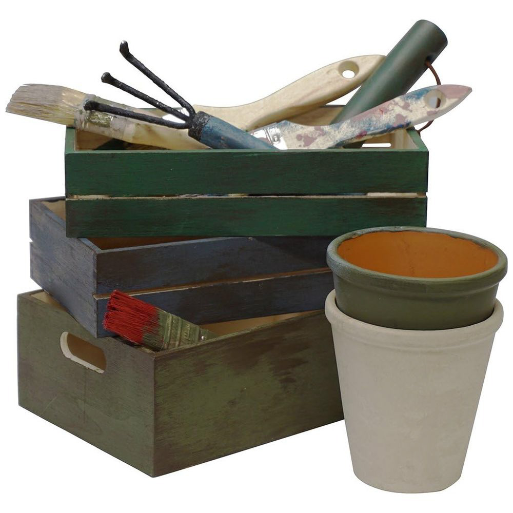 植木鉢や缶のリメイク、木製ラティスや棚、ベンチなどのガーデン雑貨のペイントにおすすめです。
