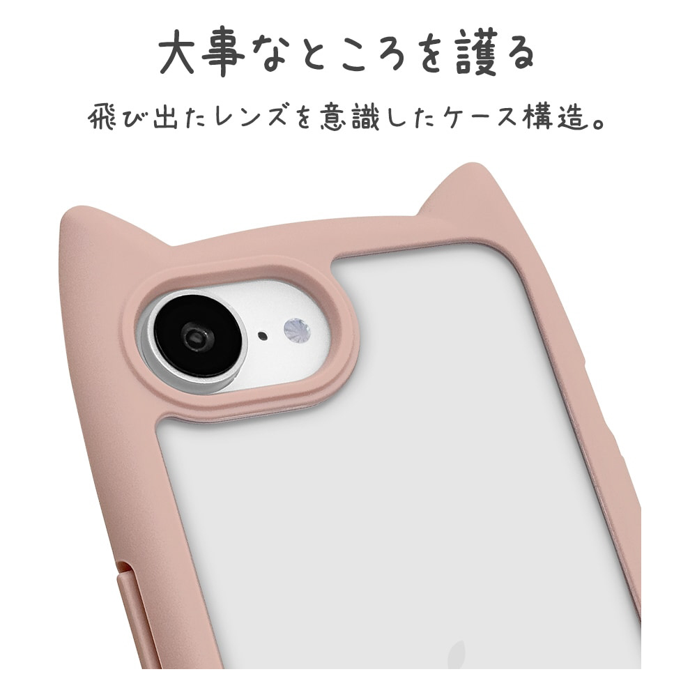 iPhone 16e mimi 猫耳ハイブリッドケース TPU×PC MIL規格準拠 スモーキーピンク