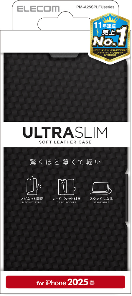 iPhone 16e ソフトレザーケース 薄型 磁石付 カーボンブラック