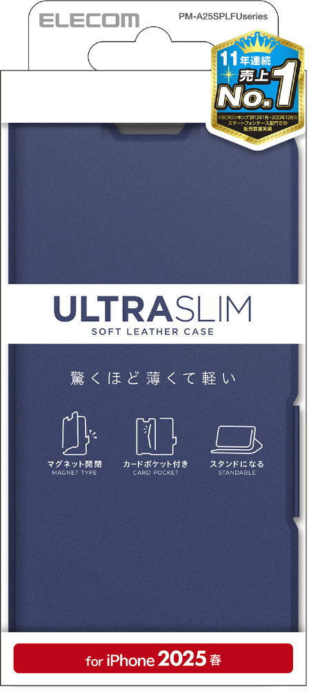 iPhone 16e ソフトレザーケース 薄型 磁石付 ネイビー