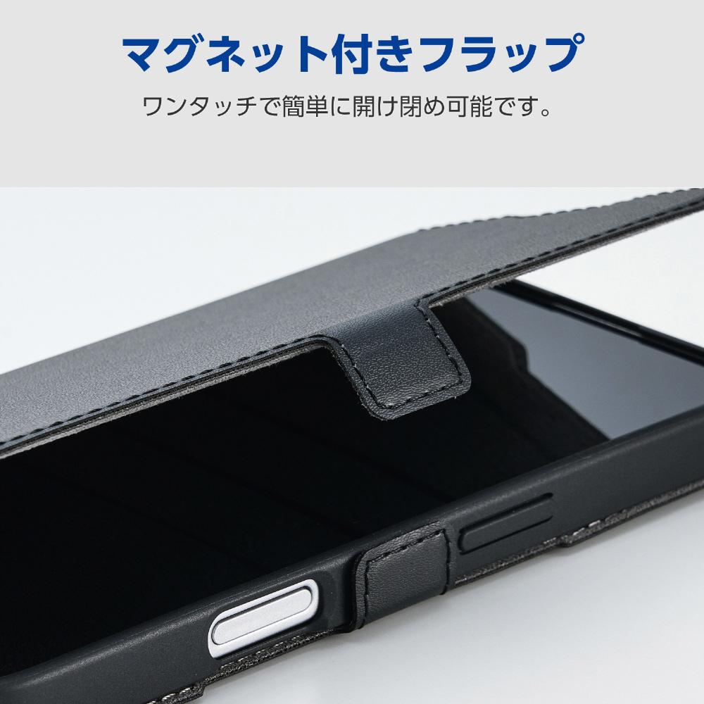 iPhone 16e ソフトレザーケース 磁石付 耐衝撃 ステッチ ブラック