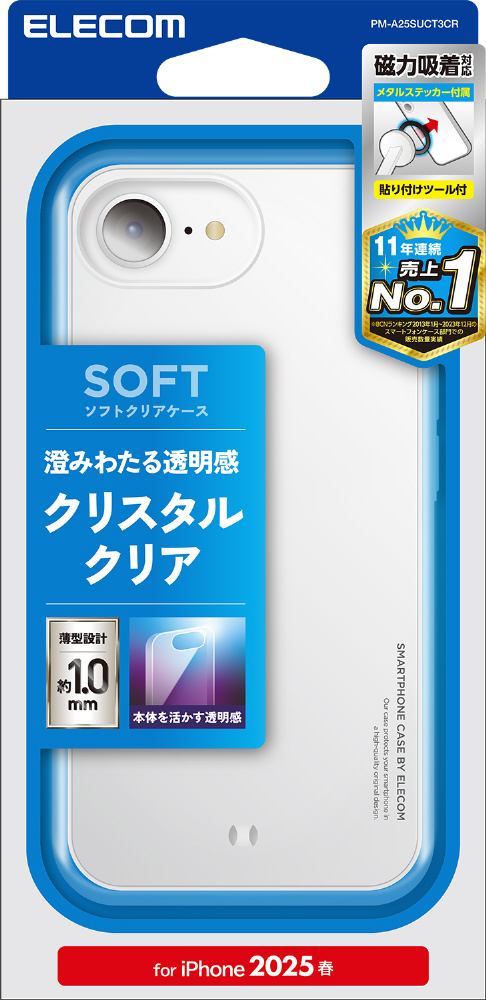 【iPhone 16e】 ソフトケース クリスタル メタルステッカー付 クリア
