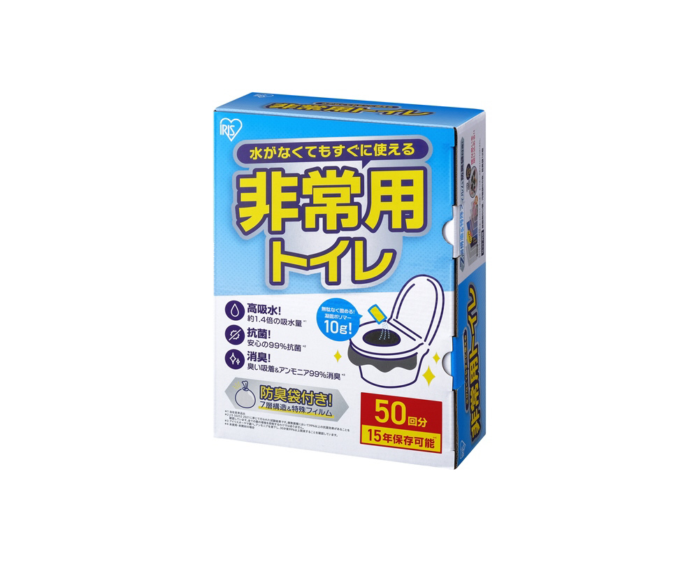 災害時やレジャー・アウトドア時など、トイレが使えないときに役立つ簡易トイレ・トイレ処理剤です。