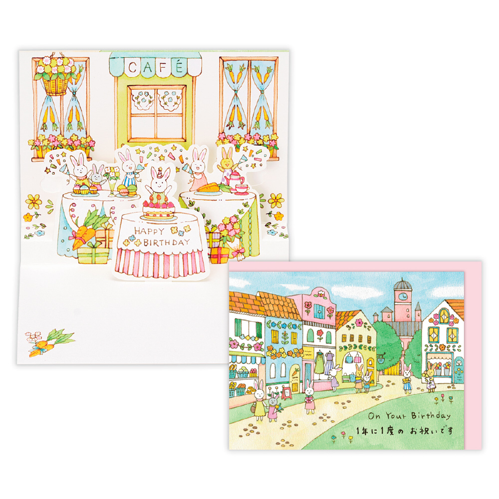 誕生日カード 立体 タイニー・アニマル・テイル うさぎ お祝いの街並み EAR-839-994