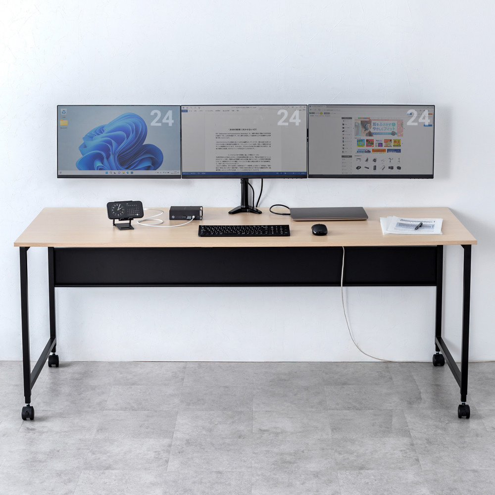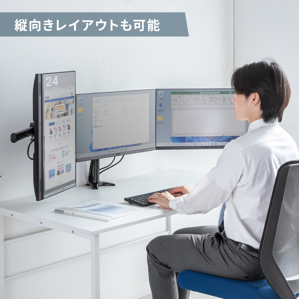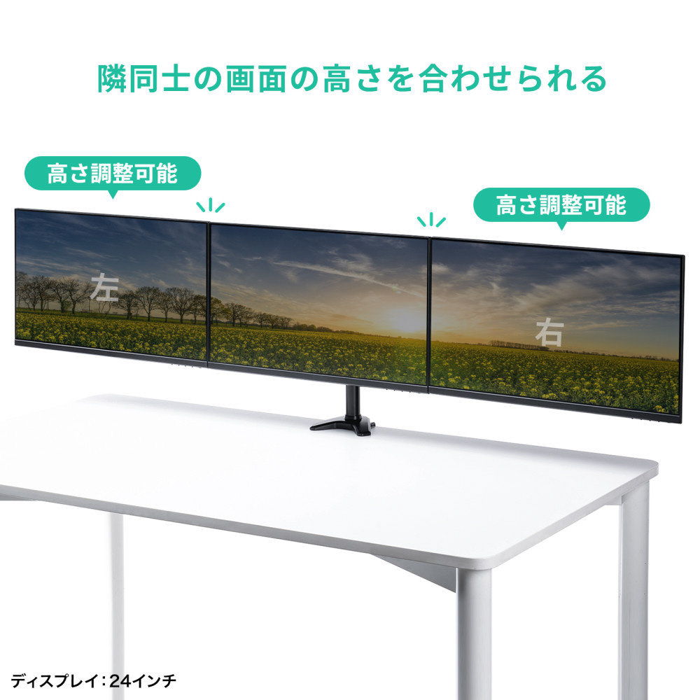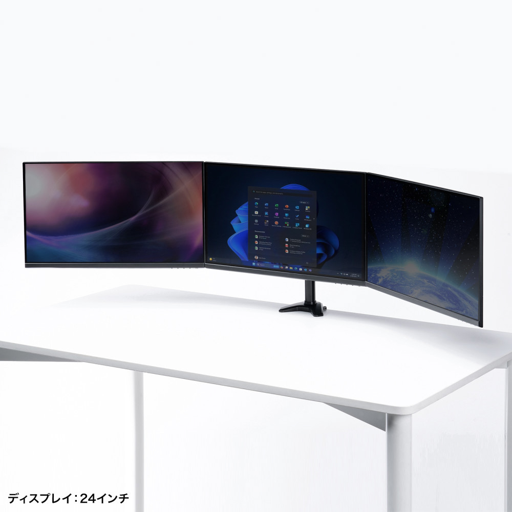 マルチ画面に最適な3画面横並びのモニターアーム。