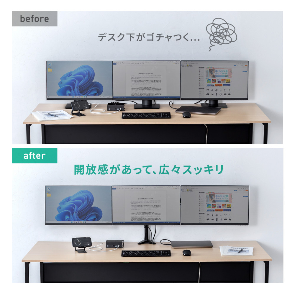 ■液晶アームを使うことで、モニターの台座を必要としない分広々とデスク上を使用できます。