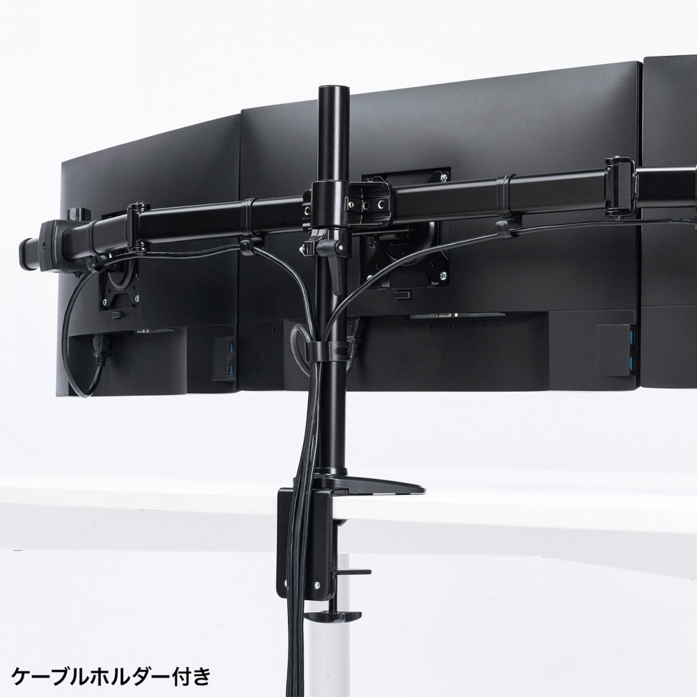 仕様3 [セット内容]左アーム、センターアーム、右アーム、支柱、ストッパー、ケーブルホルダーA、ケーブルホルダーB×4、アーム用スペーサー×4、ナット×4、ボルト(M8×55)×2、六角レンチ(3mm)、六角レンチ(4mm)、六角レンチ(5mm)、ディスプレイ取り付け用ボルトセット、組立説明書