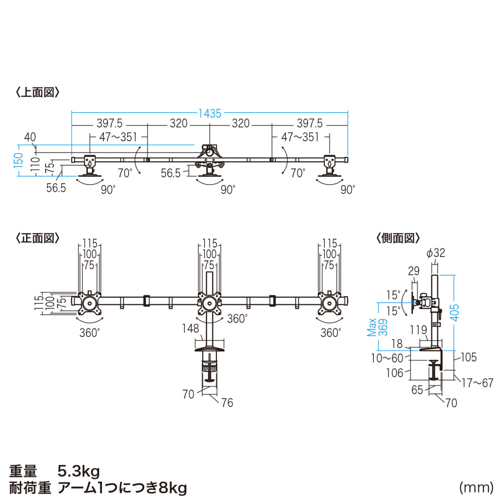 ■最大8kg(モニター1台あたり)までの液晶モニターの取り付けに対応しています。