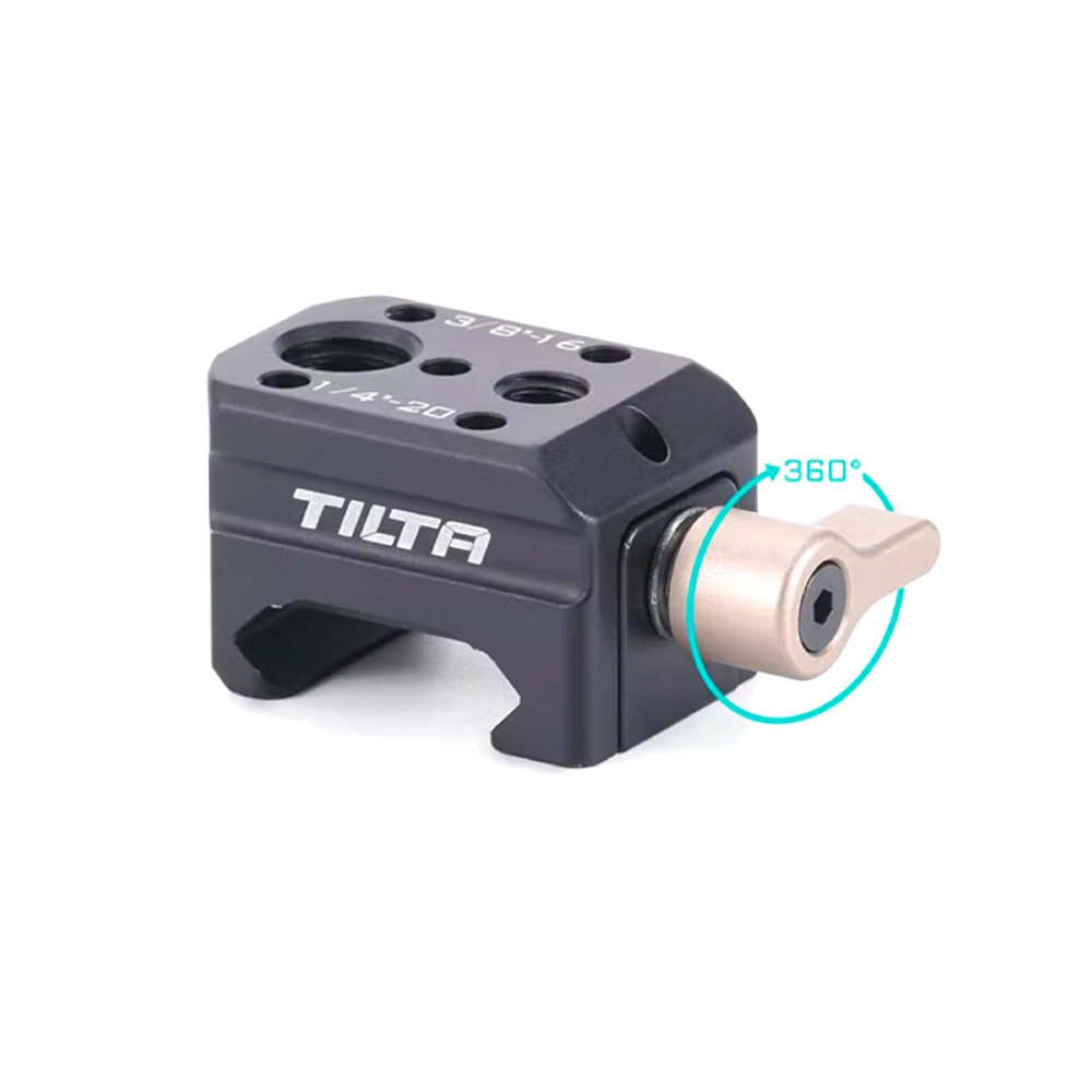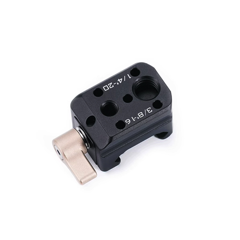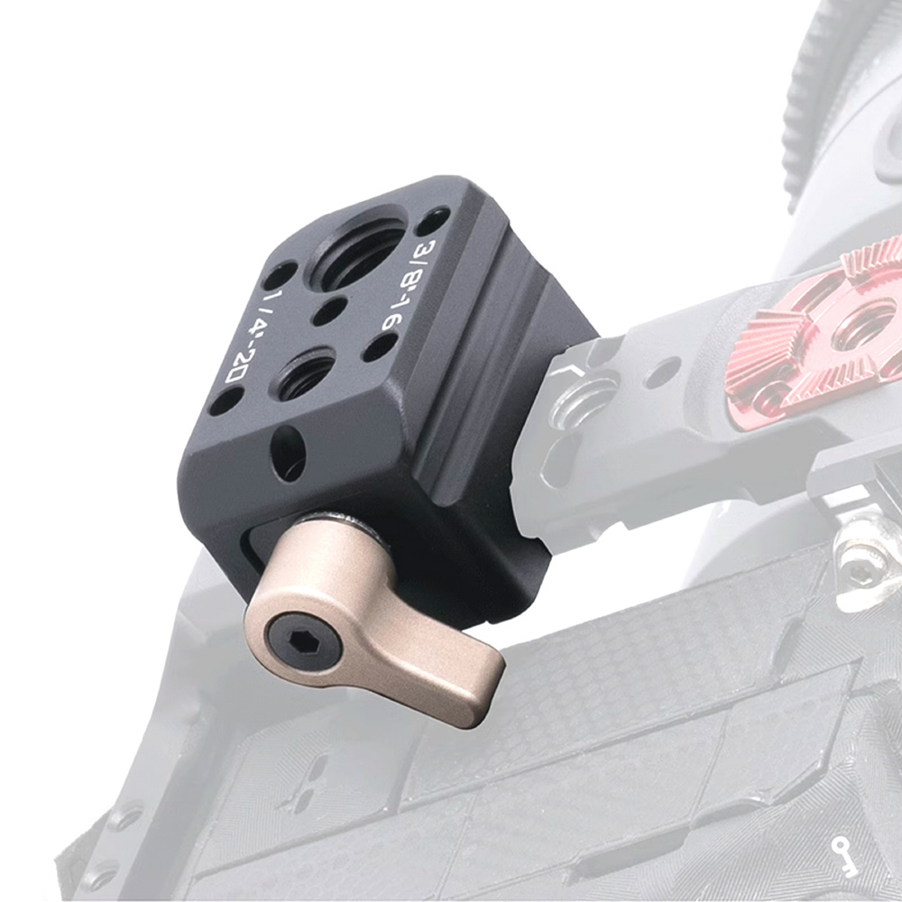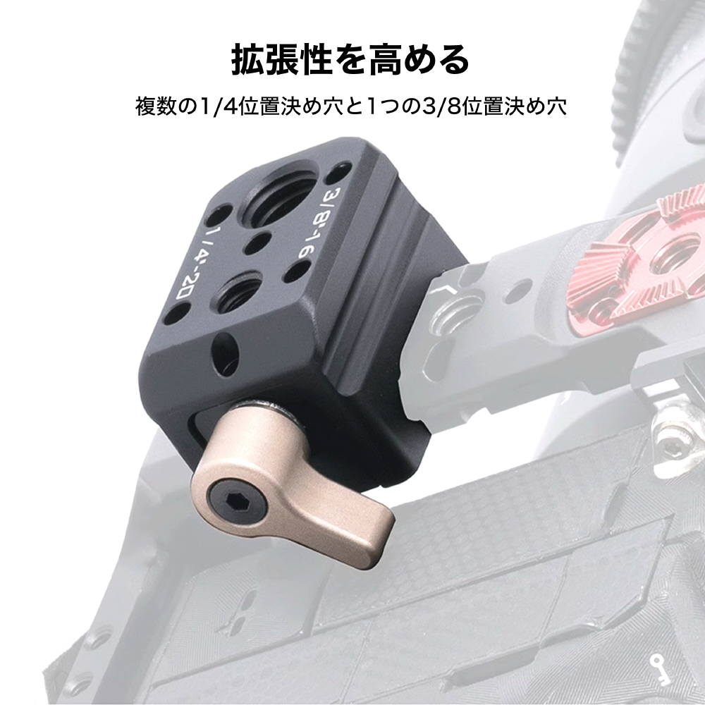 NATOアクセサリーマウントアダプター。拡張性を高める複数の1/4位置決め穴と1つの3/8位置決め穴。