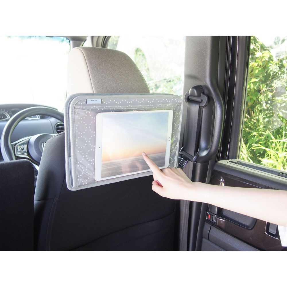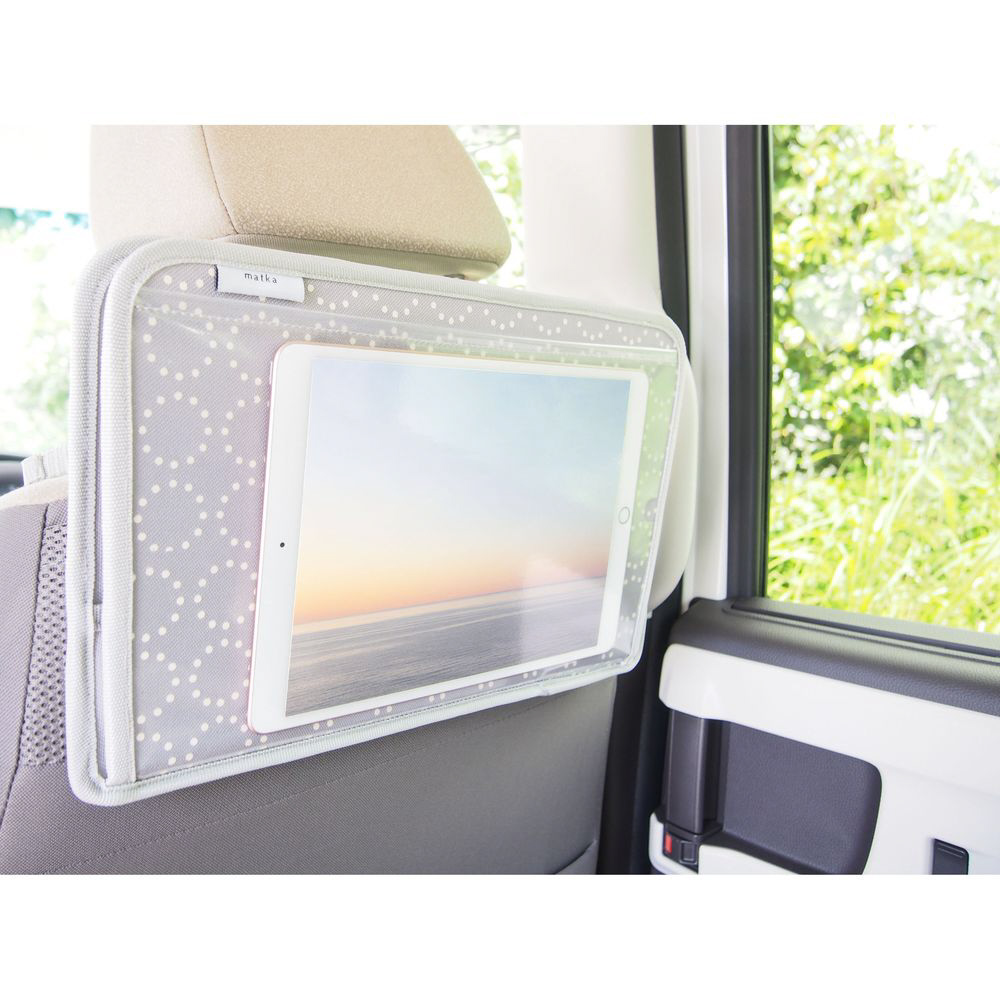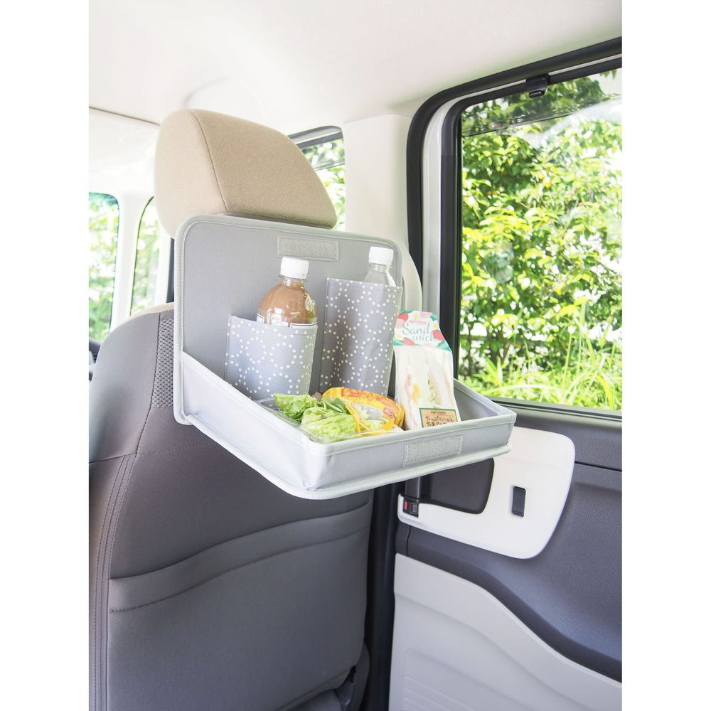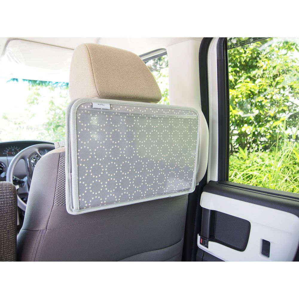 ナチュラルカラーと北欧風デザインがおしゃれなカー用品シリーズです。車内の居心地がもっと良くなる、便利で素敵なアイテムを揃えました。座席のヘッドレストに設置して後部座席で食事や動画鑑賞を楽しめるリアトレイです。食事を乗せてテーブルとして使ったり、透明ポケットにタブレットを入れて動画鑑賞ができます。ポケットに入れたまま操作が可能です。両端には充電コードを通せる穴つき。内側は撥水加工付きで汚れたときでも安心です。【仕様】耐荷重:1kg●透明ポケット:横27×縦17×厚み1cmまでのタブレットが入ります●ドリンクホルダー(2つ):500mlのペットボトルが1本入ります