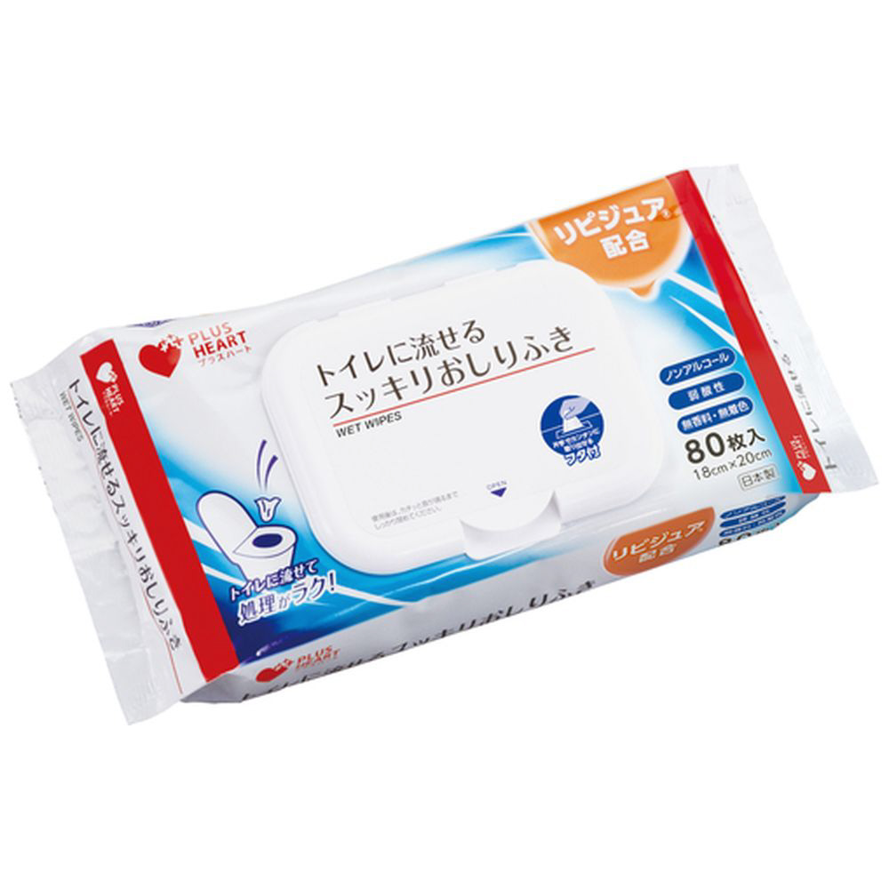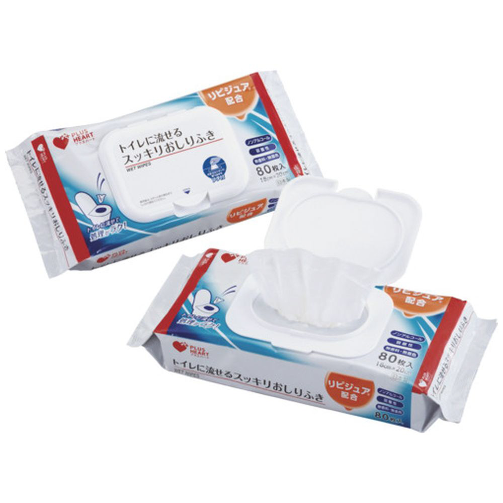 オオサキメディカル おしりふき プラスハート トイレに流せるスッキリおしりふき ふた付 80枚