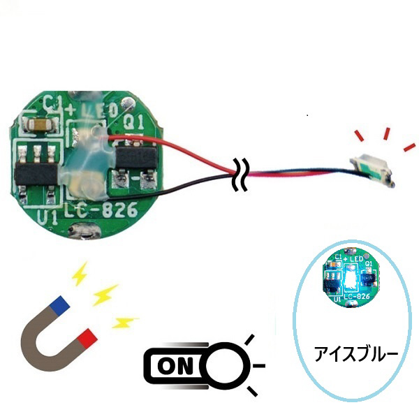 磁石を近づけることでLEDのオン/オフ切り替えが可能。ケースや筐体、部品の外側から内側のLEDモジュールを直接触れずに点灯させることが出来ます。