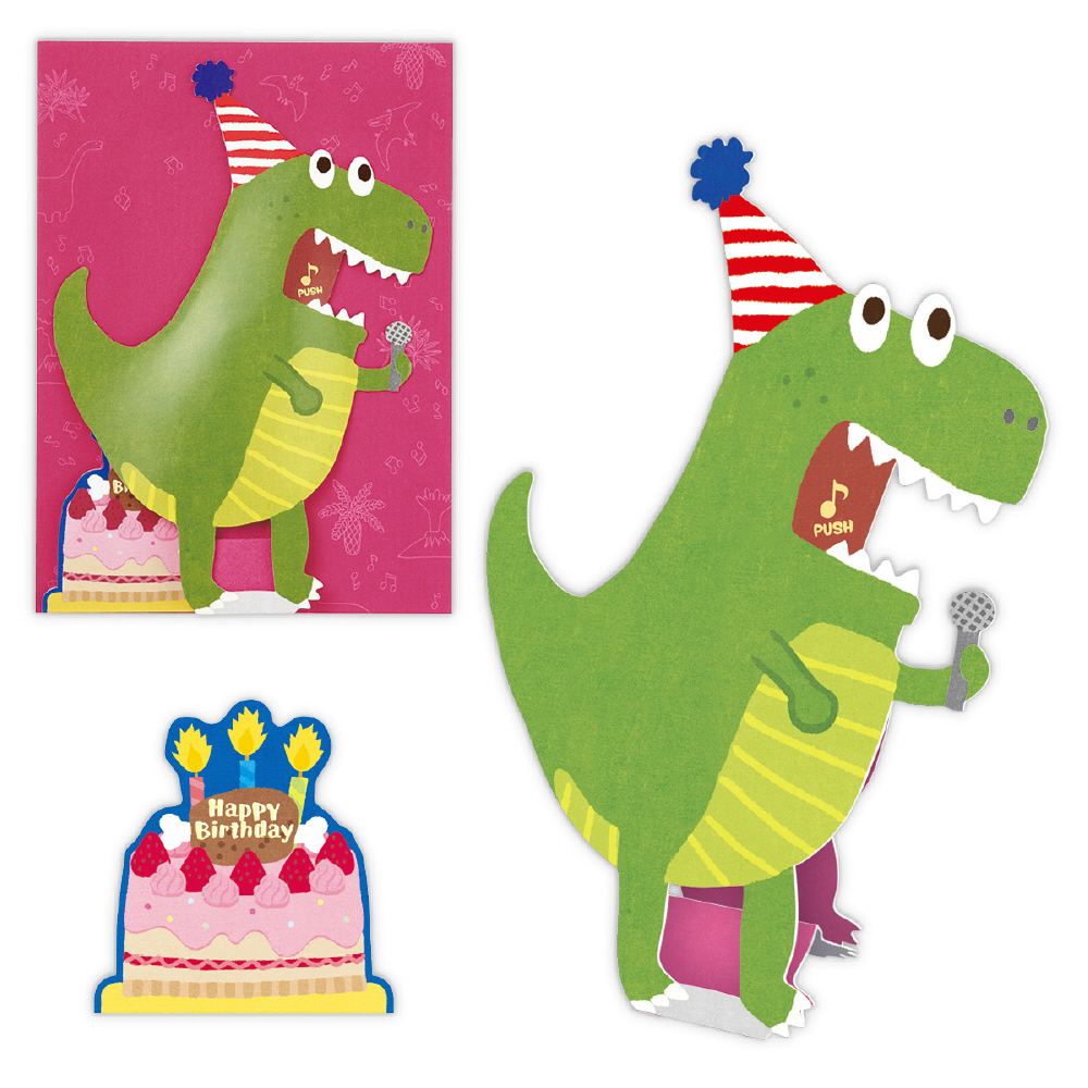 誕生日カード 立体オルゴール 熱唱系アニマルズ ダミ声恐竜 EAO-811-242