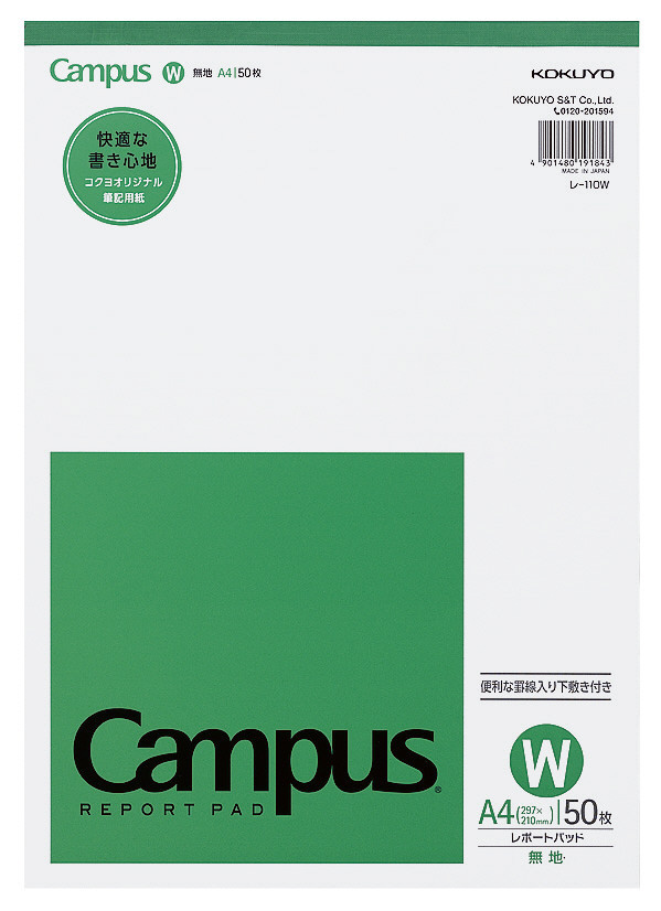 レポートパッドA4薄口50枚無地 レ-110W Campus(R)
