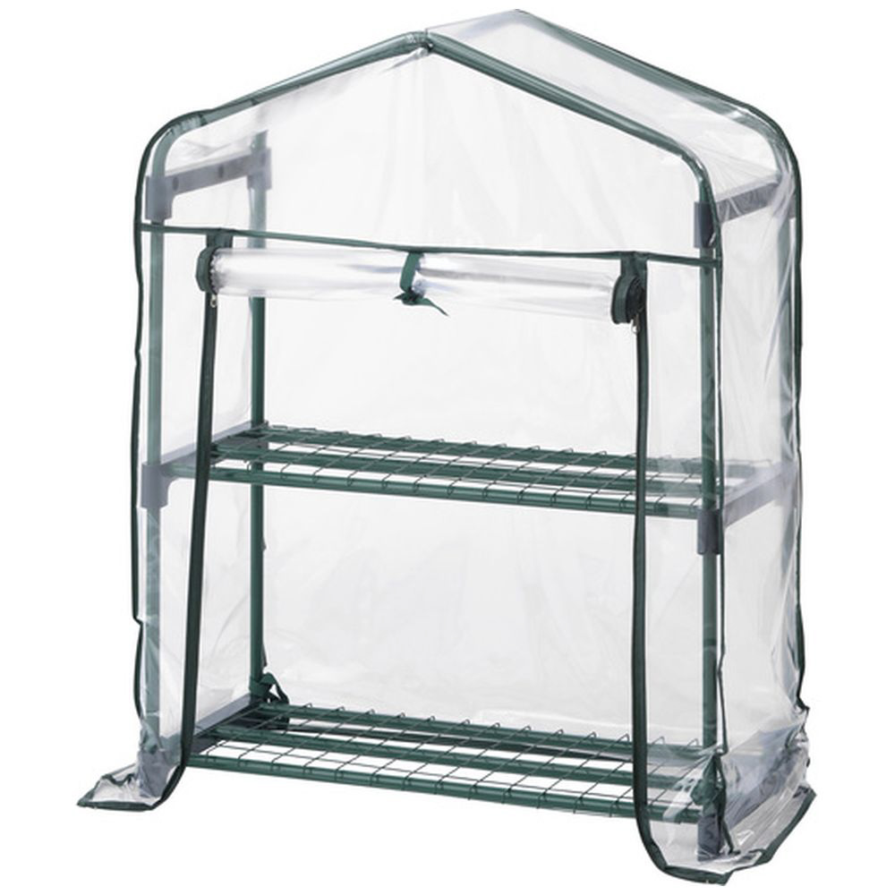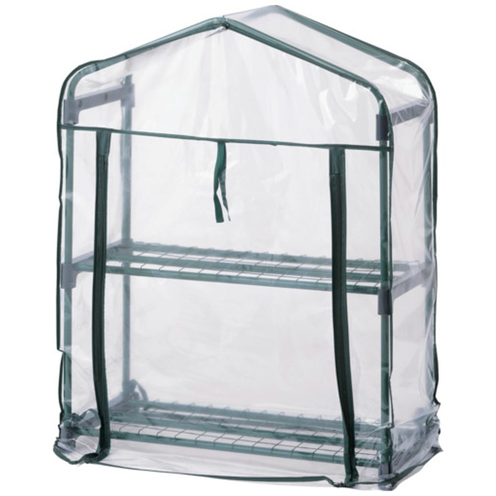 簡単組立のスリムな2段式ビニール温室。省スペースで植物を寒さや霜から守ります。ファスナー付きカバーで出し入れも便利。