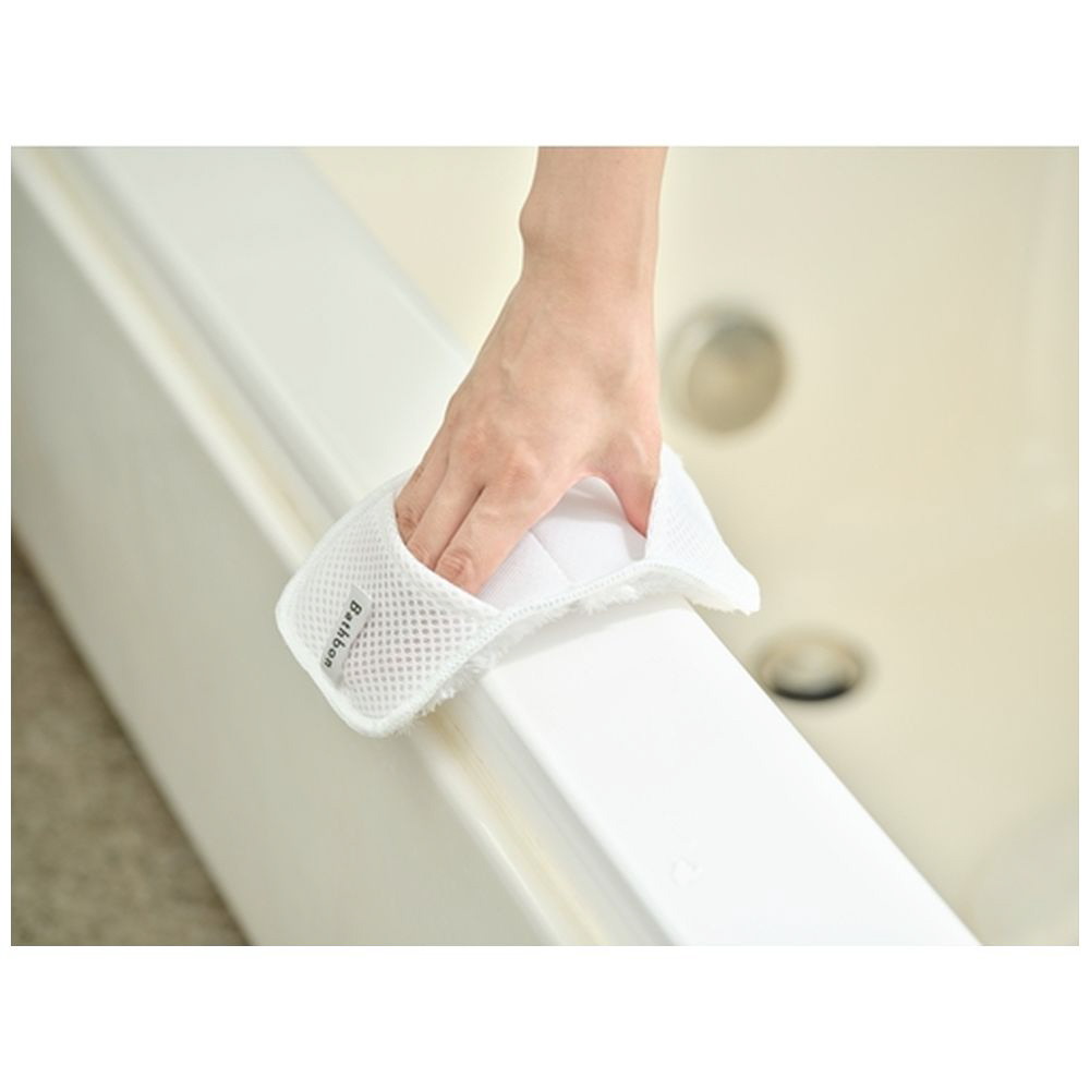 ■網目繊維でさっとなでるだけで石鹸カス・ぬめり汚れを落とします。