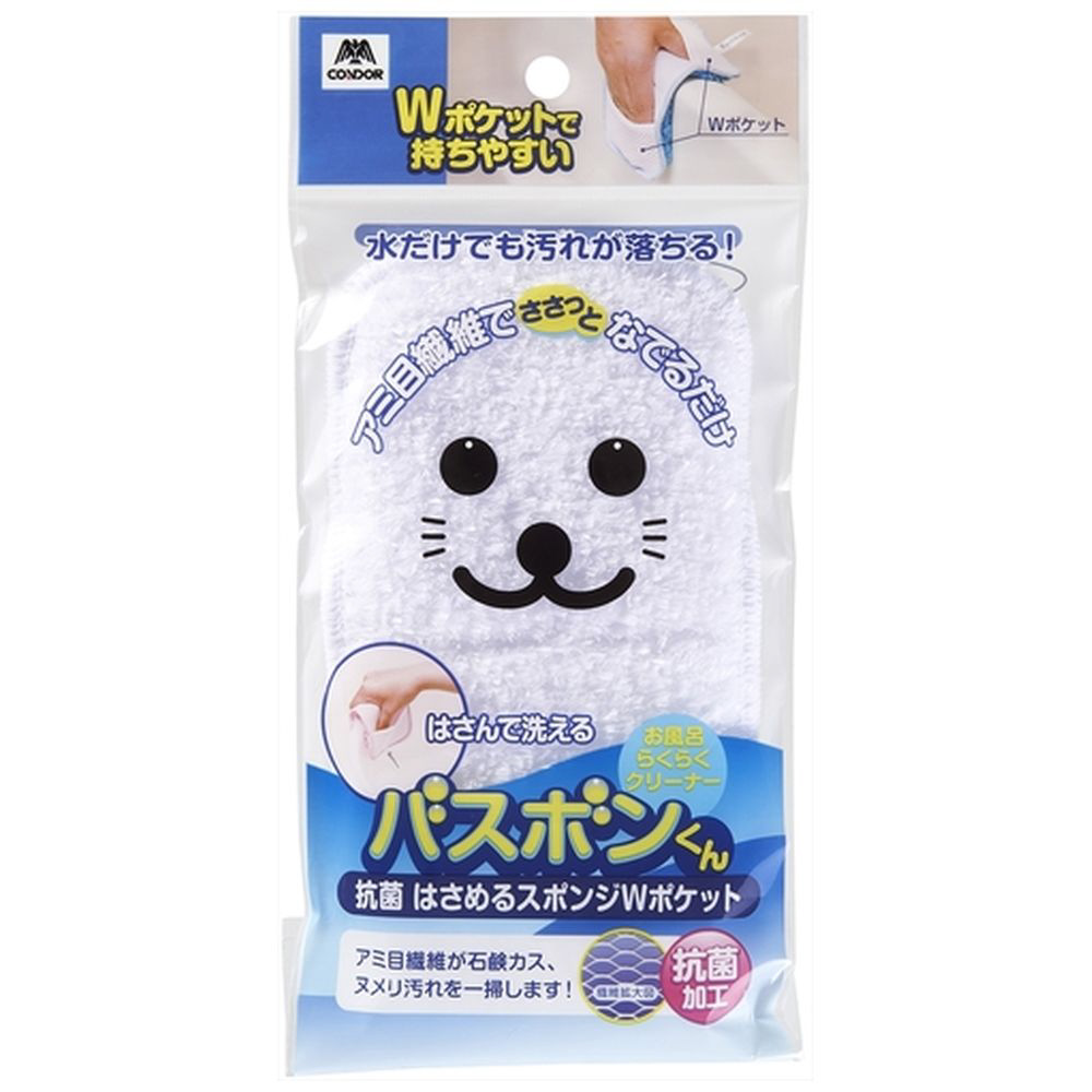 コンドル バスボンくん抗菌 はさめるスポンジ Wポケット ホワイト