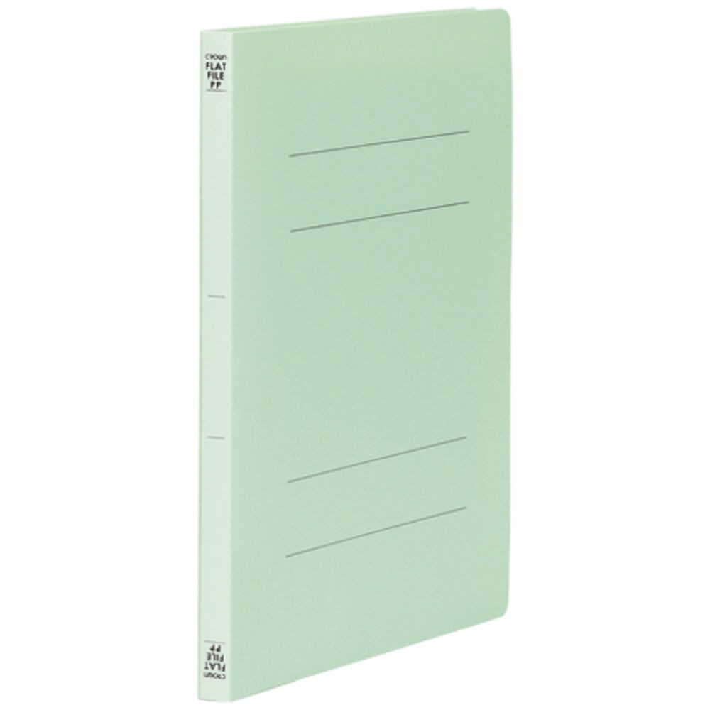 再生PP素材のA4フラットファイル。160枚収納可能で、2穴80mmピッチ。丈夫で使いやすいグリーンのファイルです。