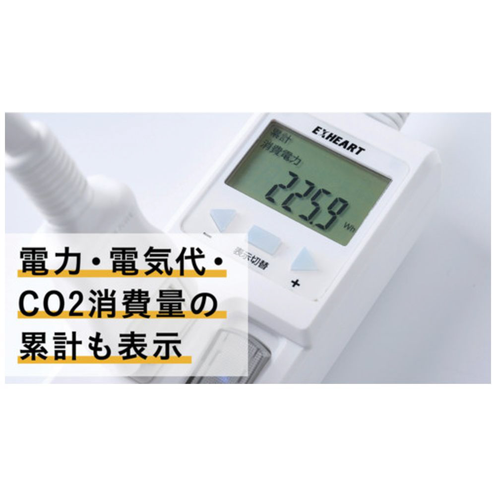 「消費電力」「電気料金」「CO2排出量」「使用時間」が一目でわかります。