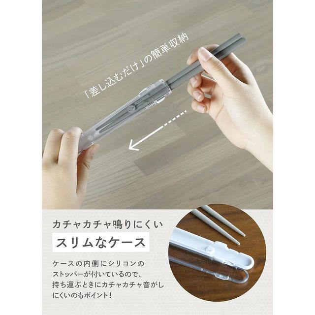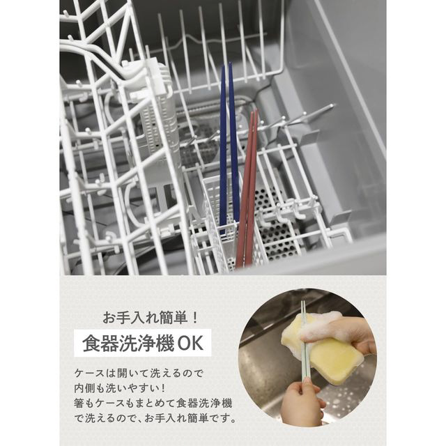 「薄型弁当箱フードマン」と同じく箸もケースもまとめて食器洗浄機で洗えるので、お手入れ簡単です。