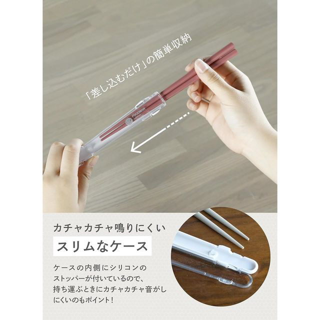 「薄型弁当箱フードマン」と同じく箸もケースもまとめて食器洗浄機で洗えるので、お手入れ簡単です。