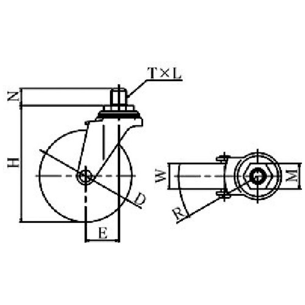 ユーエイ ねじ込み式 自在 キャスター エラストマー 車輪径75mm Lタイプ LT型 ネジ寸法W3/8×14山数16