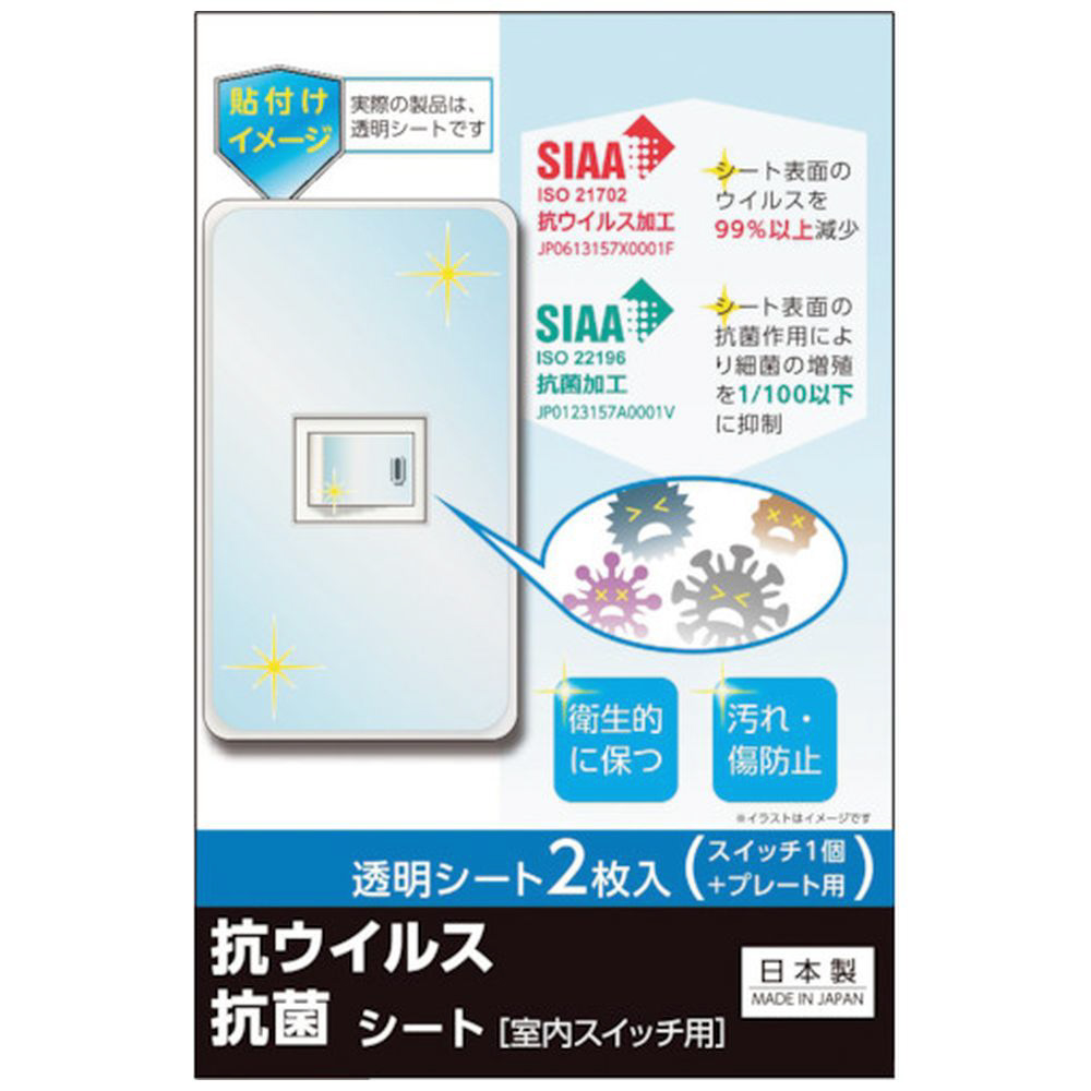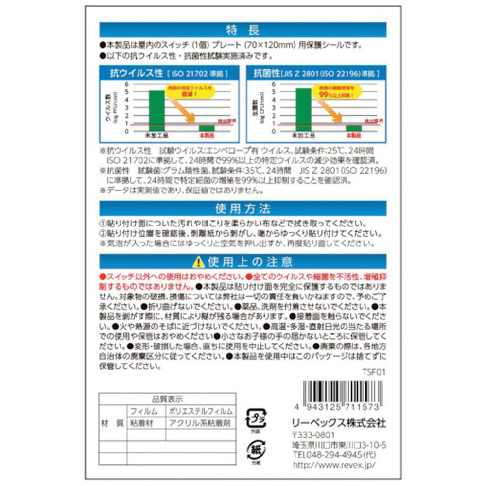 REVEX キズ・汚れ防止、抗ウイルス抗菌シート 室内スイッチ用 1コ口タイプ 2枚入