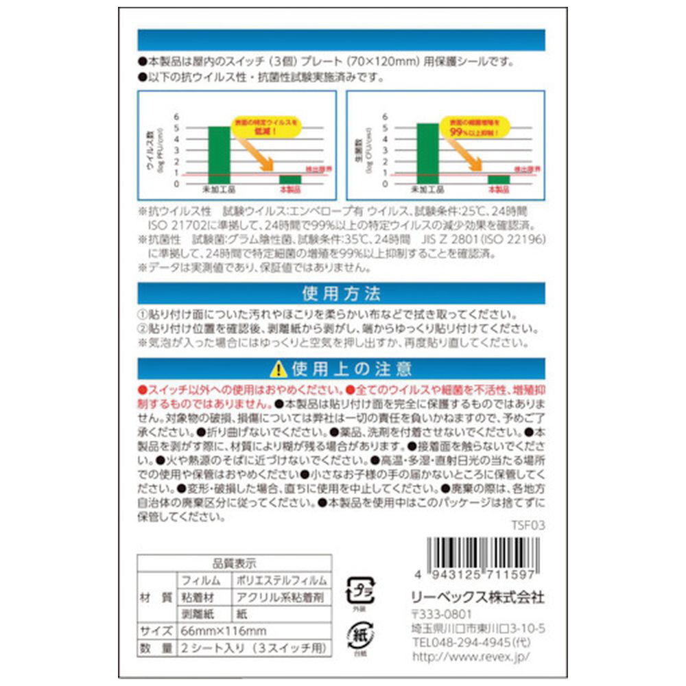 REVEX キズ・汚れ防止、抗ウイルス抗菌シート 室内スイッチ用 3コ口タイプ 2枚入