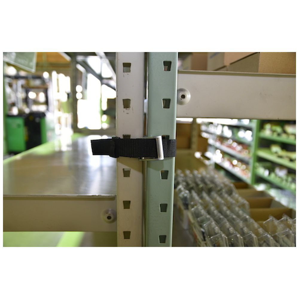 ■2つの柱をベルトで連結し転倒を防止します。