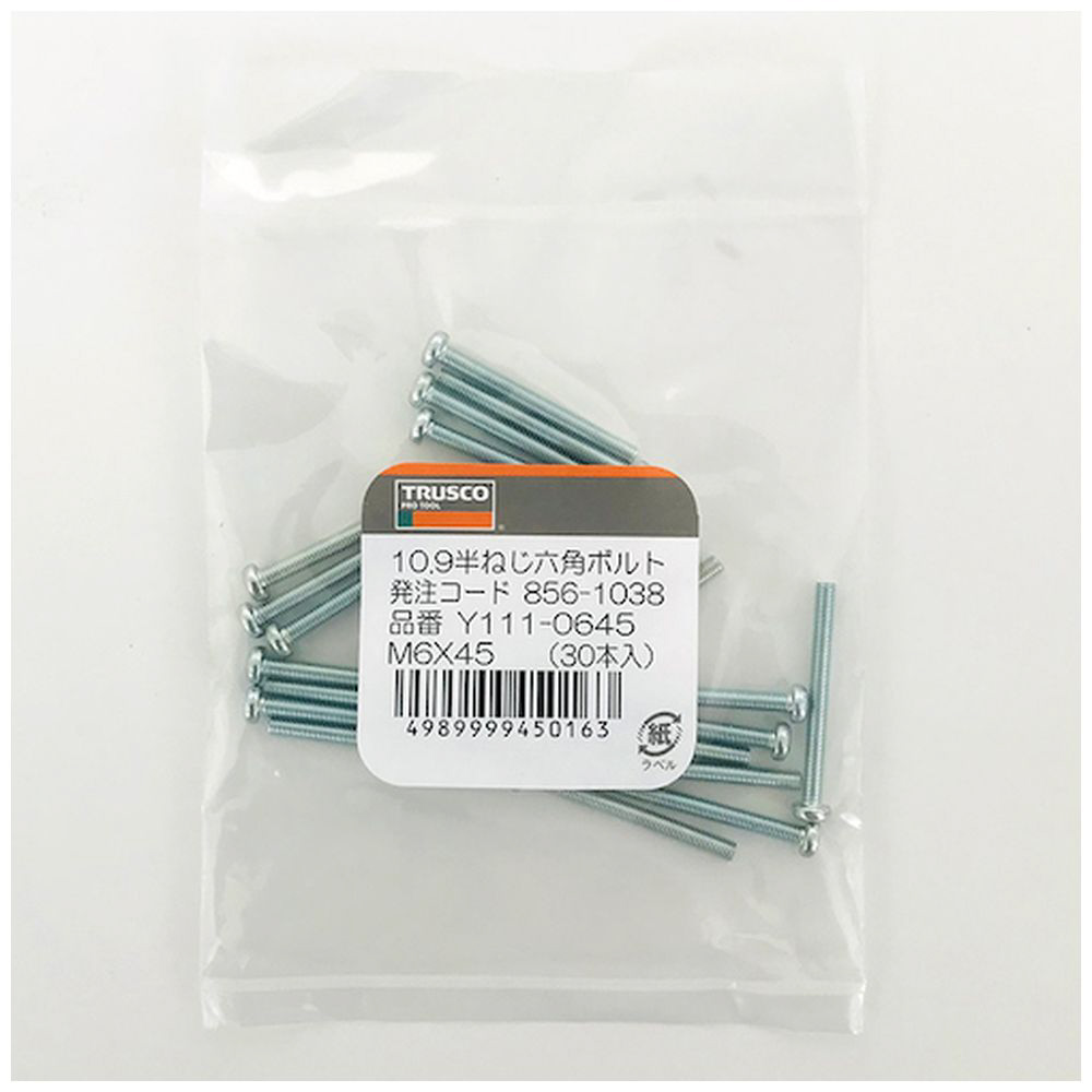 TRUSCO ナベ頭小ねじ 三価白 全ネジ M3×10 50本入 少量パック