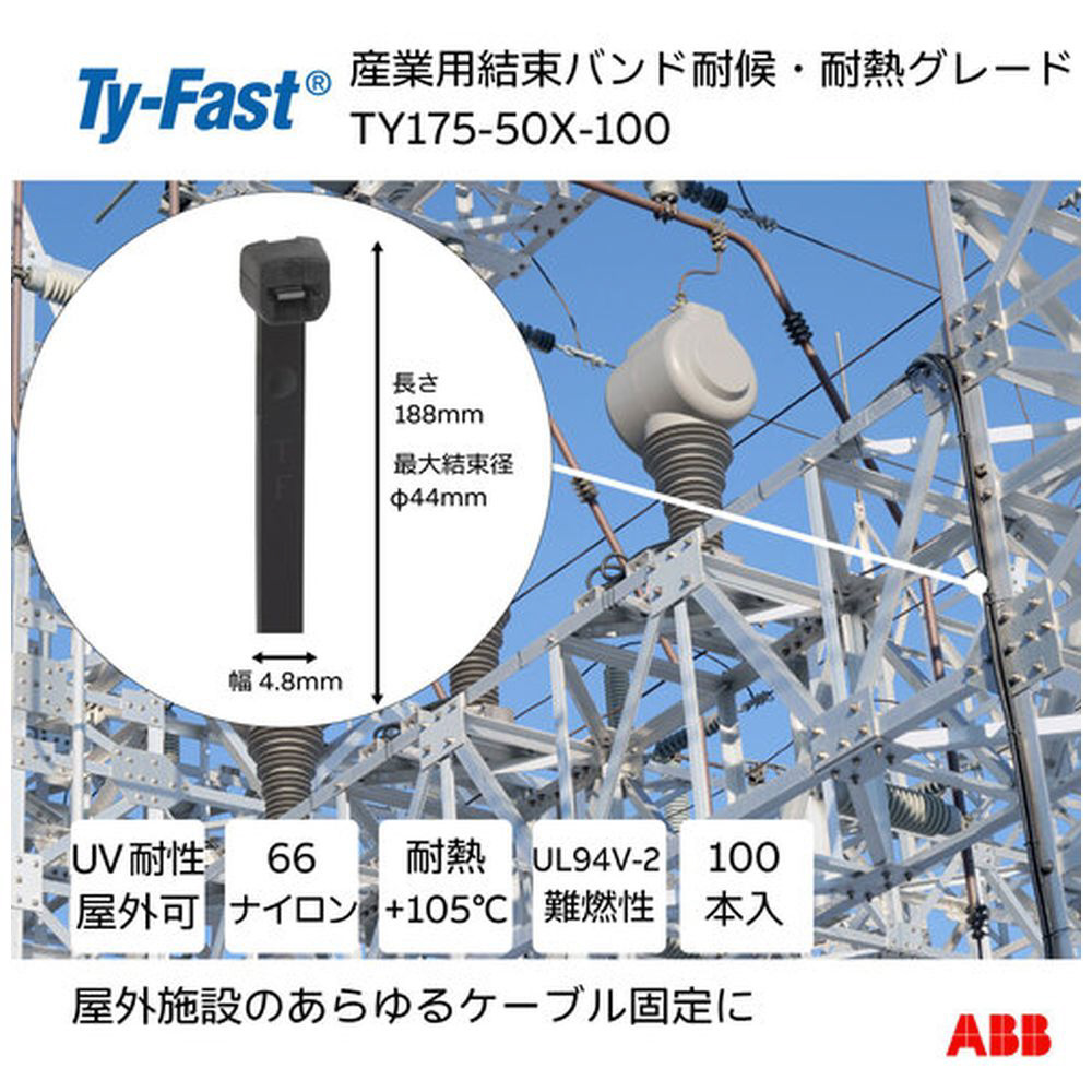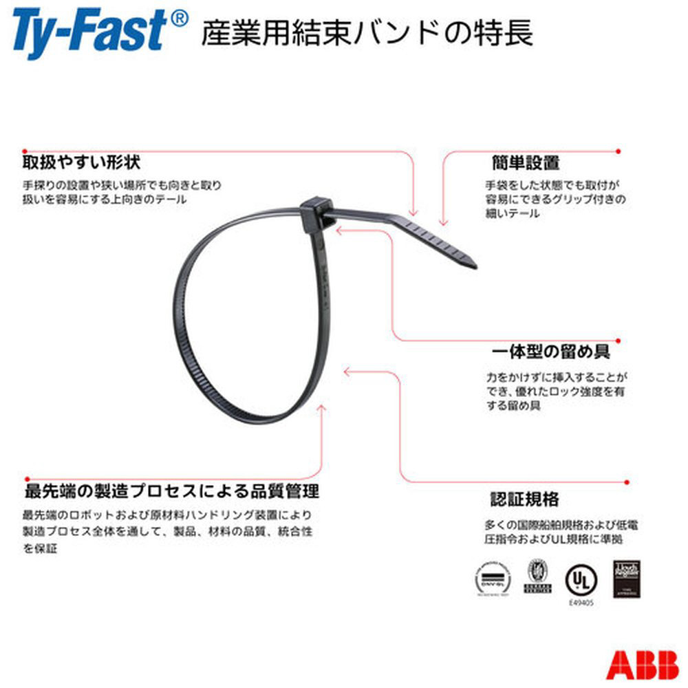 TY-Fast Ty-Fast(タイファスト)産業用ケーブルタイ(結束バンド)耐候・耐熱グレード(黒色)(小袋)幅4.8X長さ190mm100本入り