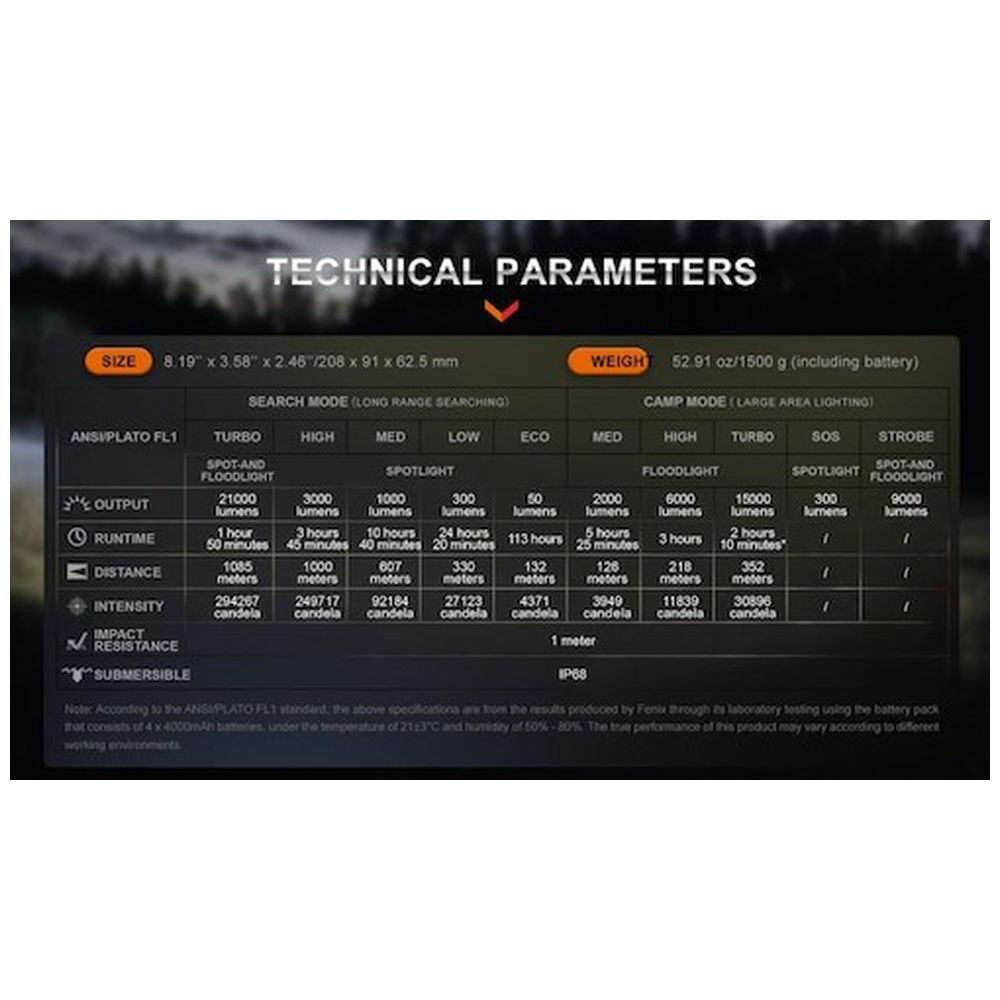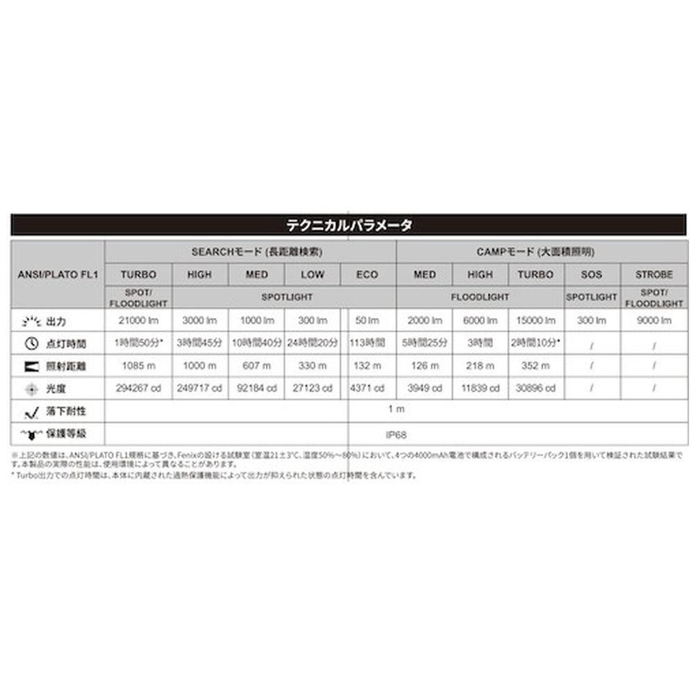 ・照射距離(m): 1085(ターボモード 21000lm時)
