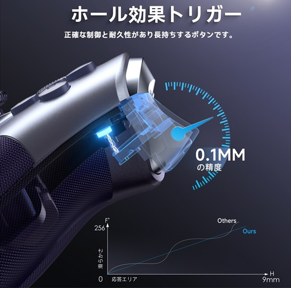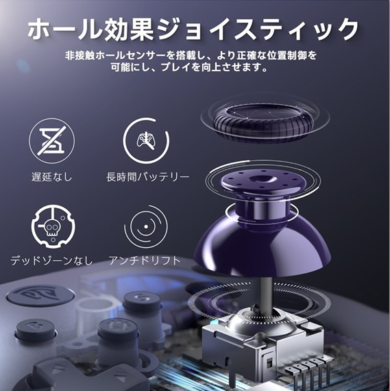 4つのホール効果センサーで強化されたジョイスティックコントロールをお楽しみください。 これらのセンサーは正確で信頼性の高い入力検出を提供し、ゲーム内でのよりスムーズで正確な動作を可能にします。 仮想世界をナビゲートする場合でも、正確に狙いを定める場合でも、当社のホール効果テクノロジーにより、シームレスなゲーム体験が保証されます。