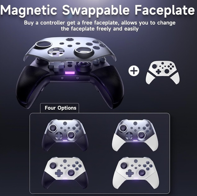 交換可能なフェイスプレート/ホール効果ジョイスティック/ホールトリガー付きの強化されたワイヤレス Bluetooth コントローラー、PC/Switch/Steam/Android TV/Android Mobile/iPhone/iPad 用