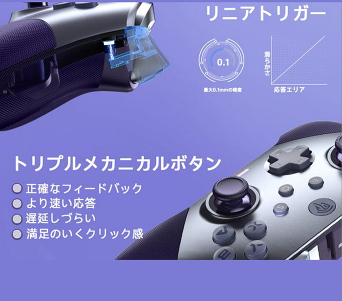 EasySMX社のコントローラーは、PC、Switch、iOS、Androidなどのさまざまなプラットフォームと互換性があるように設計されています。 ゲームにどのデバイスを好むかに関係なく、当社のコントローラーは複数のプラットフォーム間でシームレスな接続とスムーズなゲームプレイを提供し、多用途性と利便性を保証します。