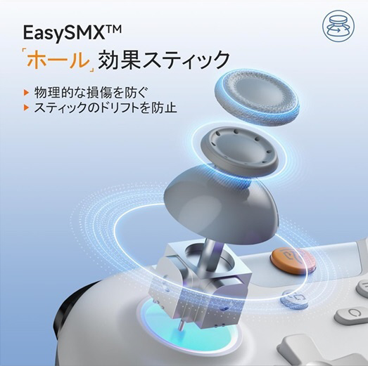 EasySMX X05 は、磁石と電気導体を使用して物理的な摩耗を排除するホール効果スティックとトリガーを備えています。