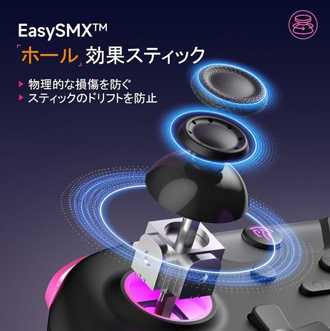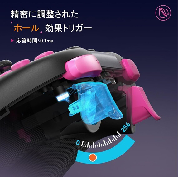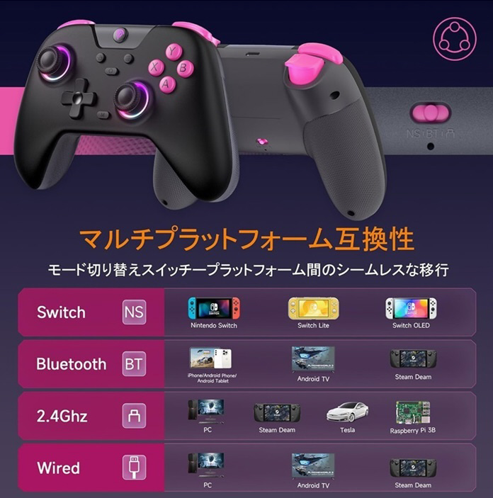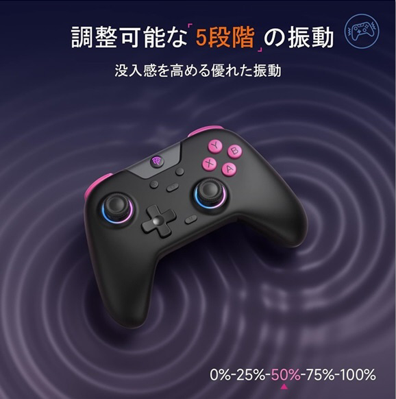 Switchコントローラー、ゲーミングコントローラー、7色ライト、5つのライトモード、5段階振動機能、ホールジョイスティック、ホールトリガー、750mAh大容量バッテリー搭載、PC/Switch/モバイル対応