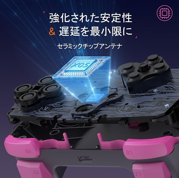 EasySMX X05 はセラミック チップ アンテナを搭載しており、安定した接続を保証し、ワイヤレス モードでの遅延を最小限に抑え、シームレスなゲーム体験を提供します。