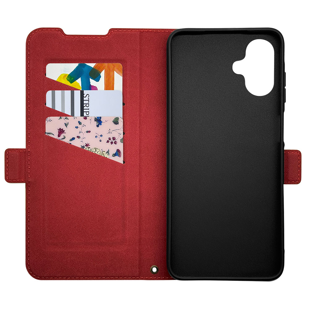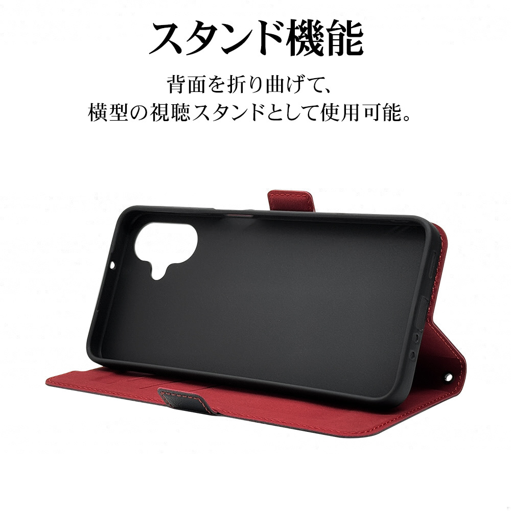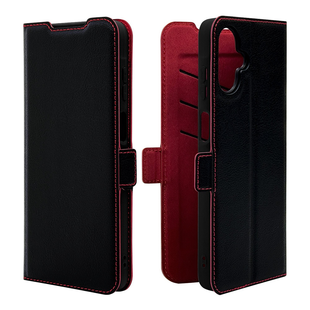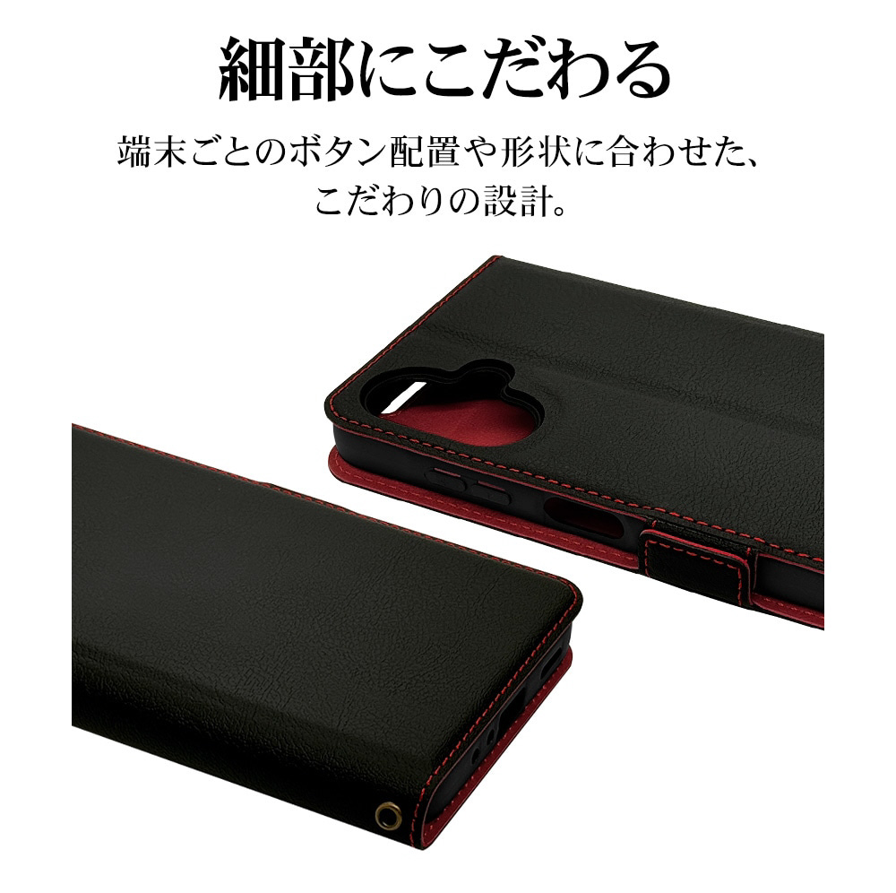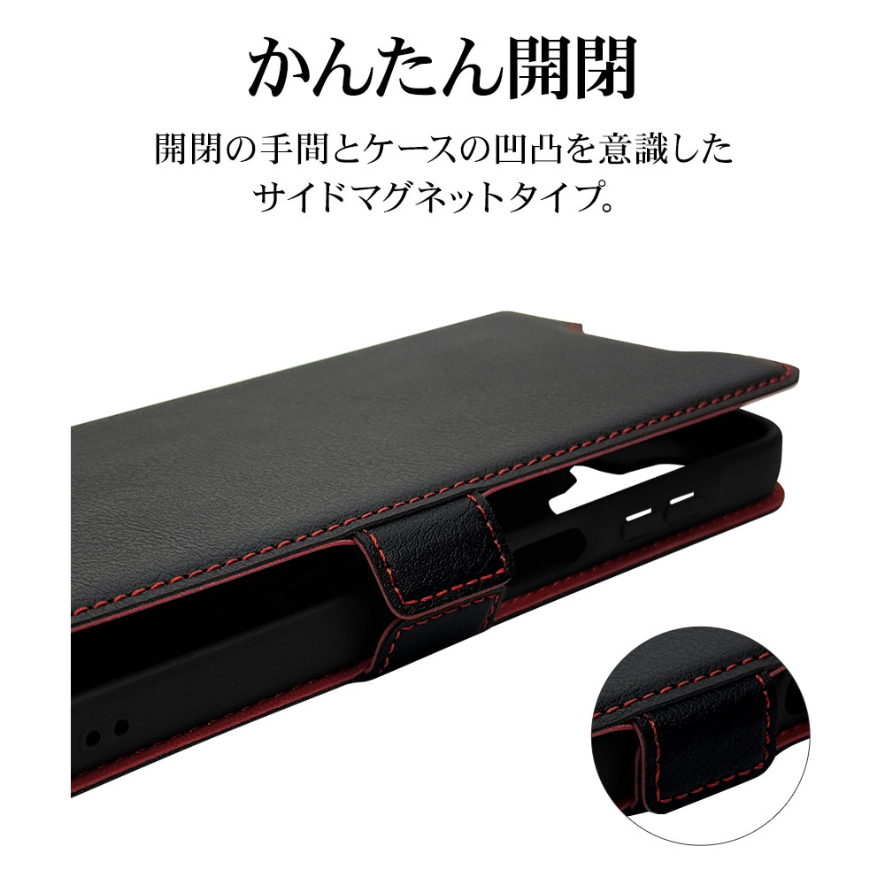 Galaxy A25 5G 薄型手帳サイドマグネットケース 衝撃吸収 ブラック×レッド 8713GA25BSMBKR
