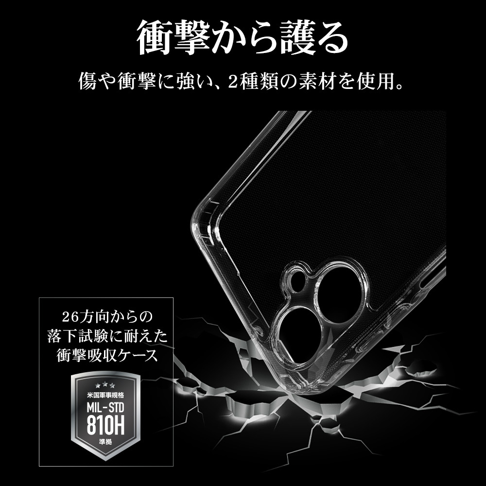 本製品はレンズ周りまでしっかりガードし、側面を柔軟なTPU、背面を傷に強いアクリル素材で保護するハイブリットケースです。