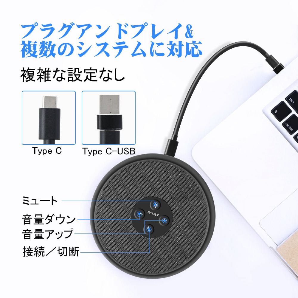 E1102 スピーカーフォン USB-C+USB-A接続 /3.5mmポート搭載 EMEET OfficeCore M1A(Mac/Windows11対応) ブラック [USB電源]