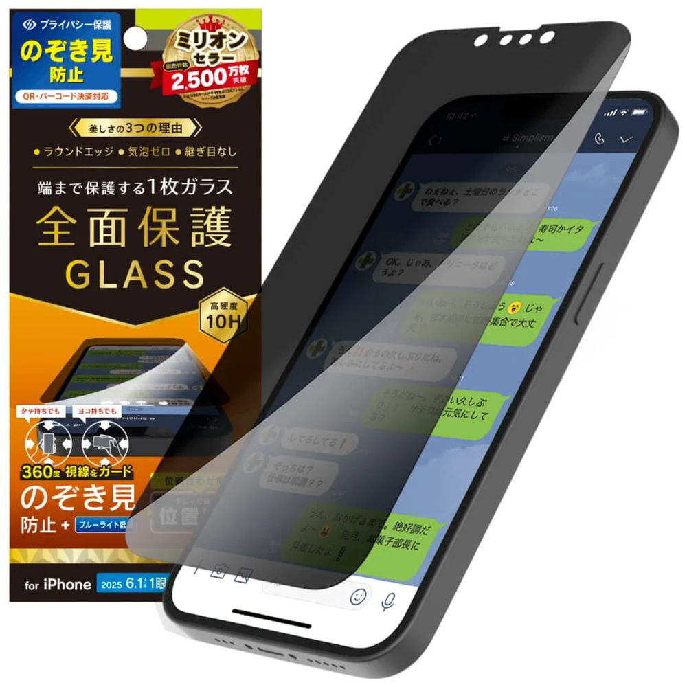 iPhone 16e フルカバー 360° のぞき見防止 画面保護強化ガラス 位置ピタ 光沢