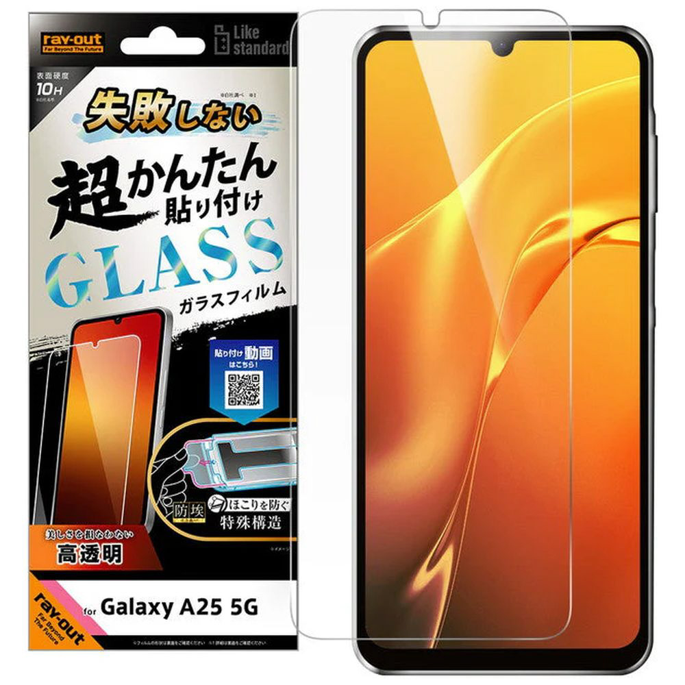Galaxy A25 Like standard 失敗しない 超かんたん貼り付け キット付き ガラスフィルム 10H 光沢 指紋認証対応 RT-GA25FKSCG