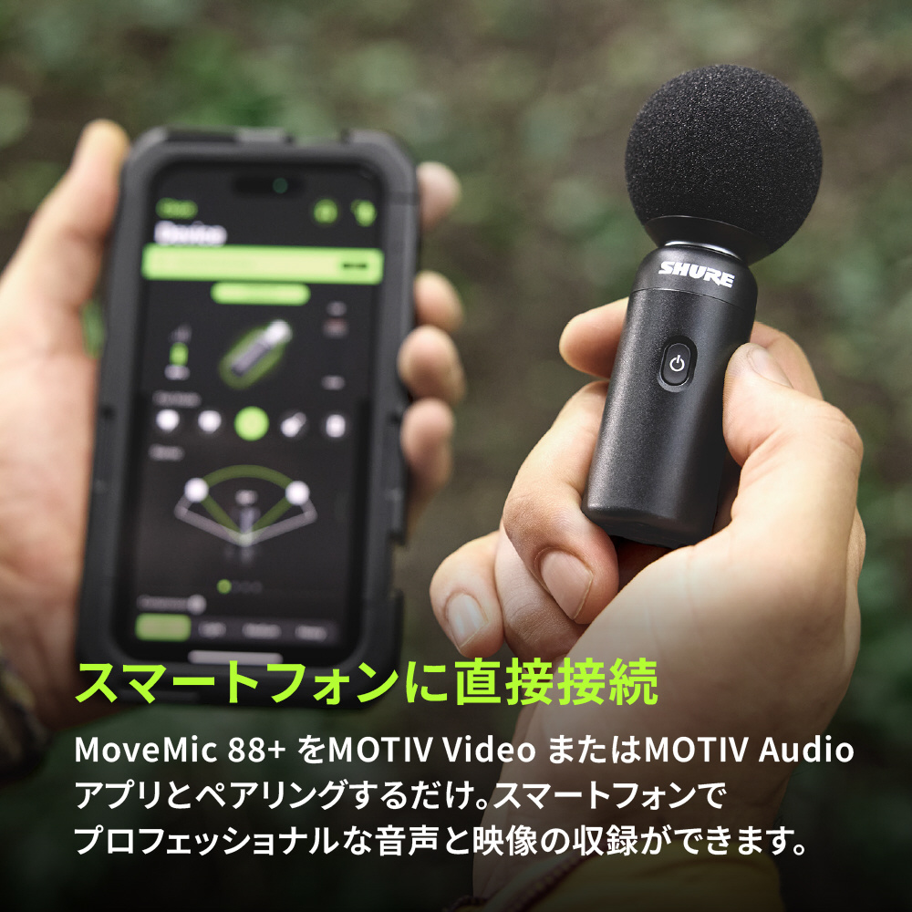 ShureのMoveMicシリーズは、高品質なオーディオをスマートフォンに直接録音することができます。