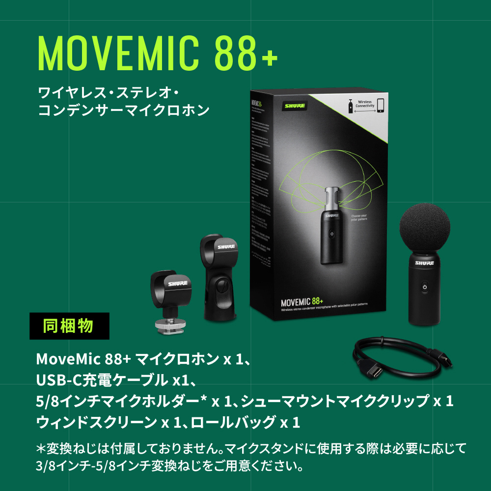 ワイヤレス・ステレオ・コンデンサーマイクロホン MoveMic 88+ MV88+W-J-Z6