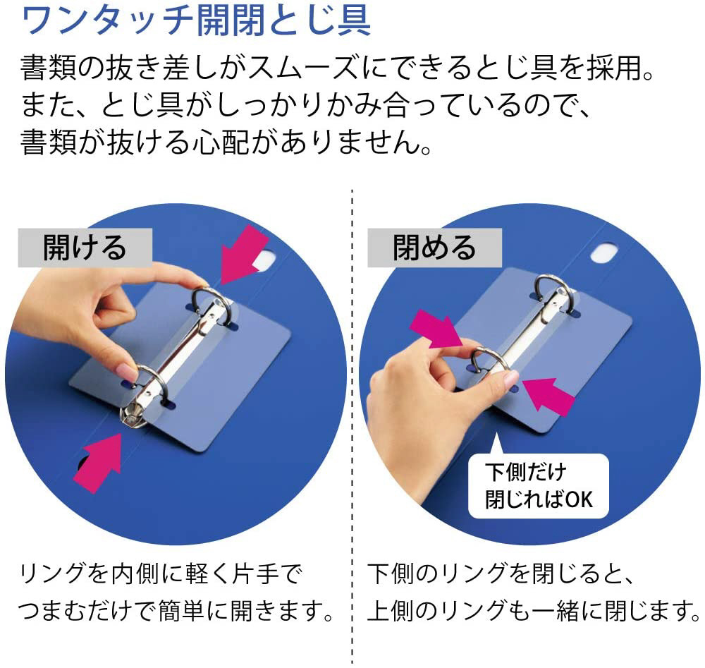 ●とじ具がワンタッチで開閉可能です