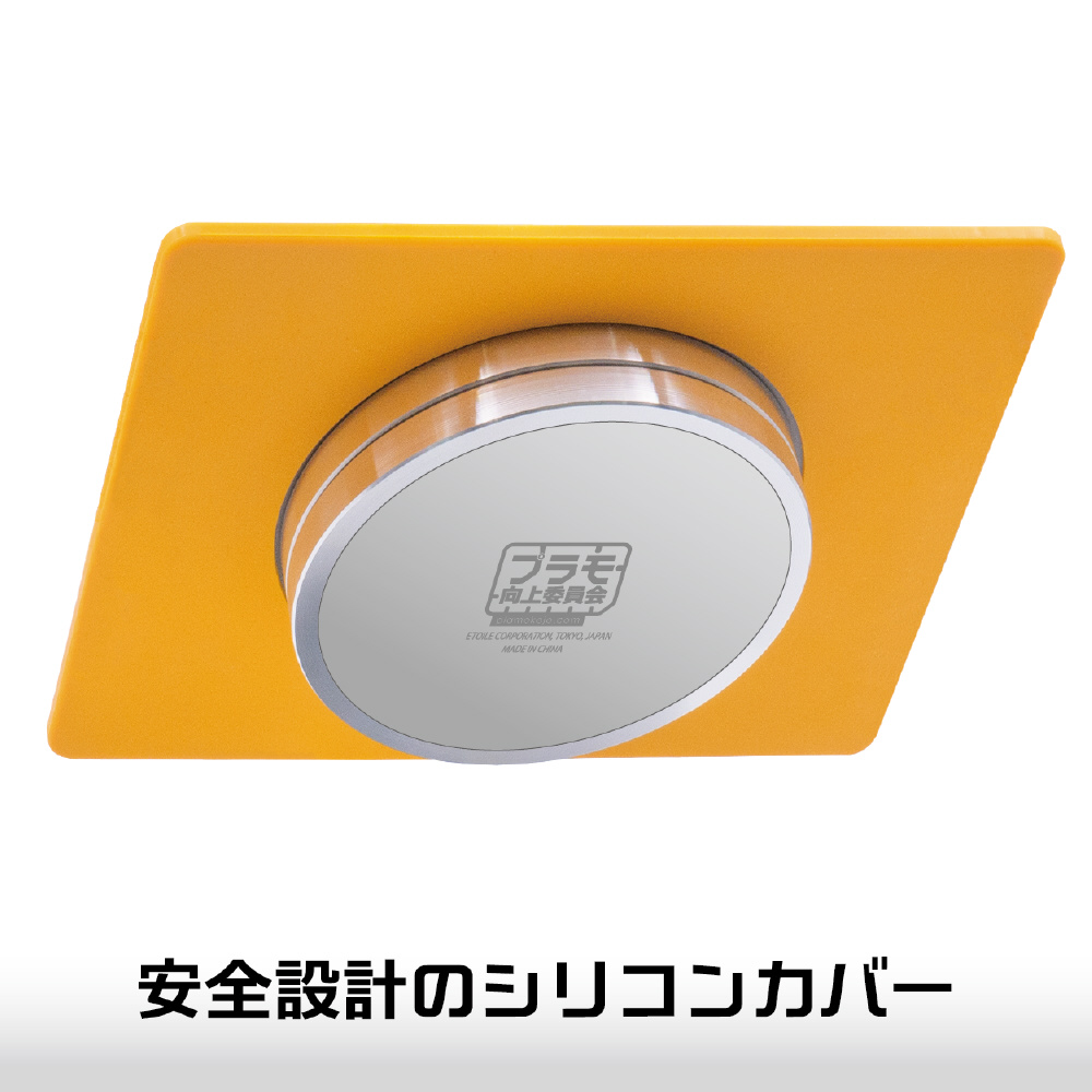 ベース外周を緩衝シリコンで覆い、エッジを保護し、安全性を高めています。塗装ブース内で使用しても熱くなりにくく、安全委取り出せます。